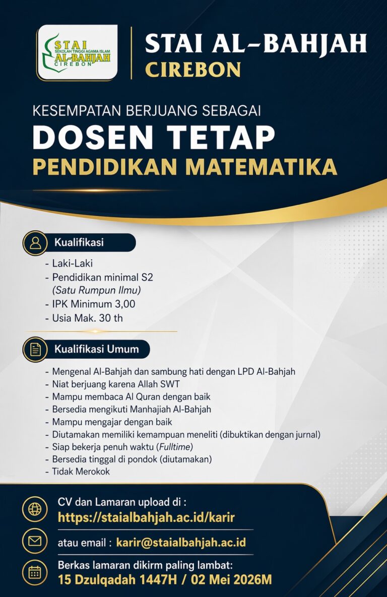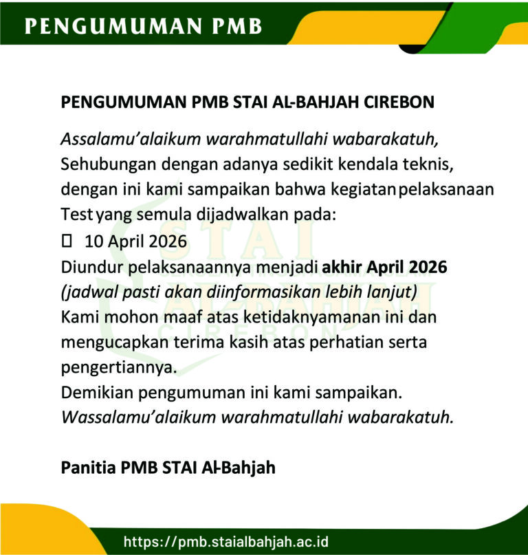 “Menjadi Sekolah Tinggi Agama Islam yang unggul dalam mencetak intelektual muslim bertaraf internasional berlandaskan Manhajiyah Al-Bahjah pada tahun 2032”