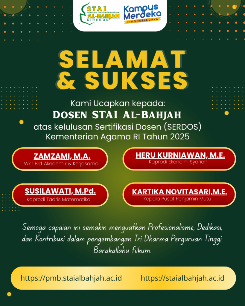 Jakarta, Selasa (20/01/2026) — Sekolah Tinggi Agama Islam Al-Bahjah Cirebon terus menunjukkan keseriusannya dalam upaya peningkatan status kelembagaan. Ketua STAI Al-Bahjah Cirebon, Ust. Muhamad Saechu, Lc., M.E., bersama jajaran pimpinan dan tim, melakukan kunjungan resmi ke Kementerian Agama Republik Indonesia dalam rangka menindaklanjuti proses pengajuan alih bentuk dari Sekolah Tinggi menjadi Institut. Dalam kunjungan tersebut, […]